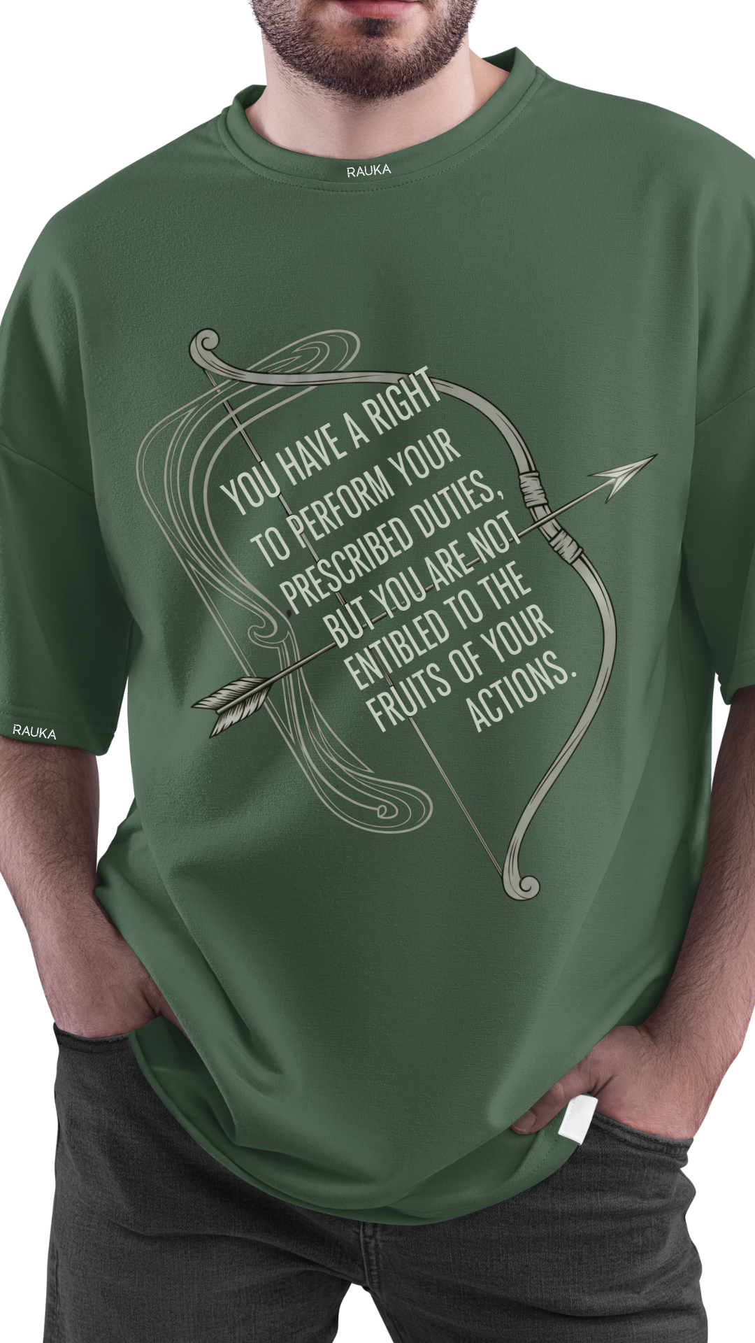 Embrace the timeless wisdom of the Bhagavad Gita with our "Karmanye Vadhikaraste" T-shirt, a profound reminder to focus on your efforts and find liberation from the outcomes. This design beautifully embodies the principle of Nishkama Karma – selfless action and detachment from the fruits of your labor.